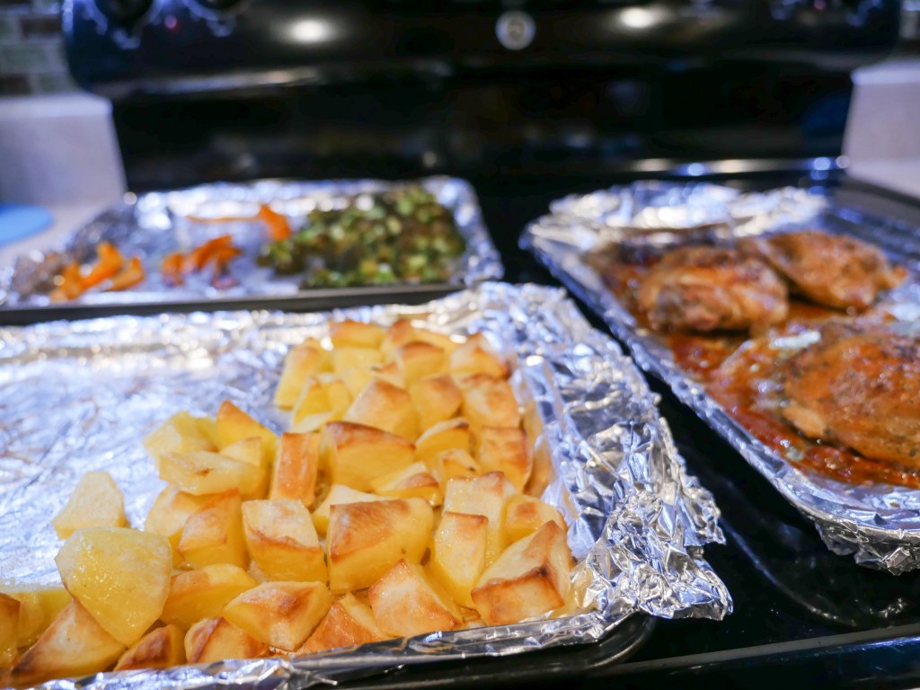 Hey loves wanted to share with y’all my own recipe that I call French chicken. This time I decided to make it with oven veggies.You can also make it with mashed potatoes.
